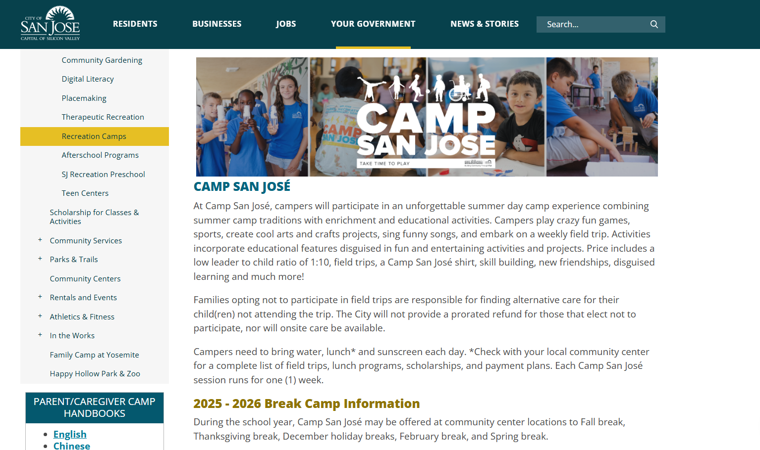 I was the creative director for this promotional campaign promoting all City of San José summer camps with to increase brand awareness and staff recruitment by 2025. Through my expertise in photo and video production, I delivered a series of social media and web content, as well as a library of assets for future marketing material.